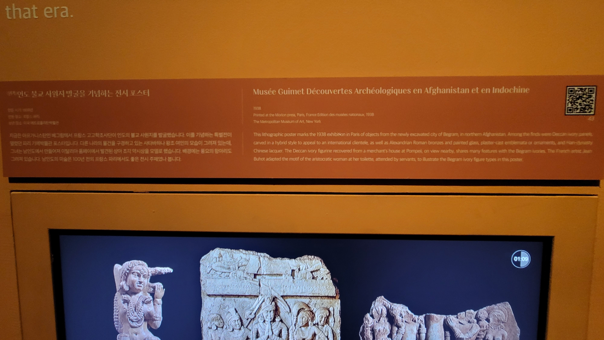 지금은 아프가니스탄인 베그림에서 프랑스 고고학조사단이 인도의 불교 사원지를 발굴했습니다. 이를 기념하는 특별전이 열렸던 파리 기메박물관 포스터입니다. 다른 나라의 물건을 구경하고 있는 사타바하나 왕조 여인의 모습이 그려져 있는데, 그녀는 남인도에서 만들어져 이탈리아 폼페이에서 발견된 상아 조각 역사상을 모델로 했습니다. 배경에는 풍요의 항아리도 그려져 있습니다. 남인도의 미술은 100년 전의 프랑스 파리에서도 좋은 전시 주제였나 봅니다.