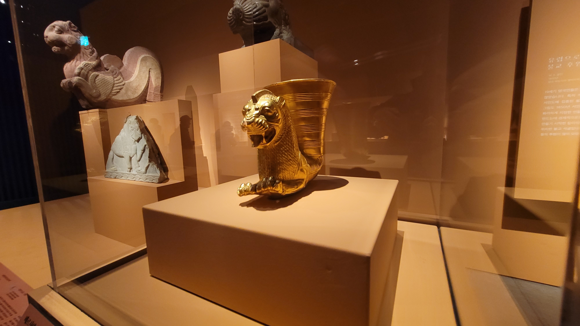 석가모니의 설법은 사자의 울부짖음을 뜻하는 사자후 獅子吼에 비유됩니다. 이처럼 사자는 불교에서 아주 중요한 동물입니다. 동물의 왕 사자는 불교를 넘어 서아시아와 그리스 등 다른 문화에서도 중요하게 여겨졌습니다. 사자를 표현한 작품들을 보면 당시 인도가 주변국과 활발히 교류했던 사실을 알 수 있습니다.