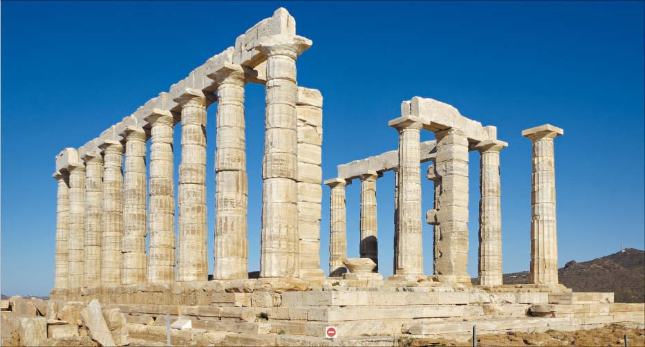 수니온곶에 세워진 포세이돈 신전의 모습. 아테네는 바다를 통해 세력을 키운 도시였기 때문에, 아테네 사람들에겐 바다의 신 포세이돈 역시 중요한 신이었죠.