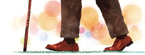이 시에서도 그동안 의지해 오던 지팡이를 두고 혼자의 힘으로 걸음을 막 떼는 순간의 희열을 드러낸다. 그 기쁨은 자신의 것이기도 하지만 함께 사는 가족의 것이기도 하다. 손뼉을 마주치고, 크고 세차게 소리치고, 두 손을 높이 들며 기뻐하는 열렬한 환호와 환희의 시행 (詩行)은 가족 모두가 이 경이로운 순간을 얼마나 고대했는지를 역력하게 보여준다. 시인이 쾌차하길 기도한다.