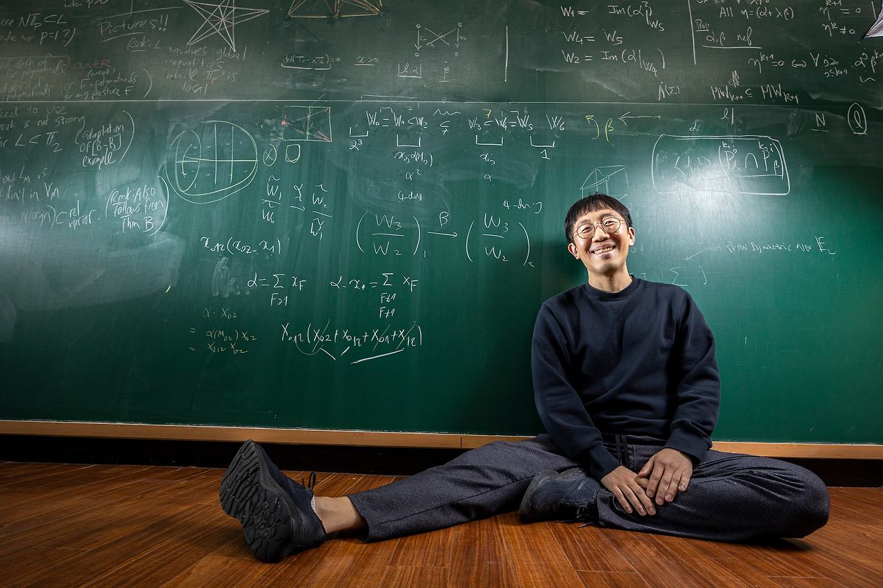 서울 동대문구 고등과학원 연구실에서 만난 허준이 교수. 칠판에는 분필로 적은 수식과 기호, 도형이 춤을 추고 있다. “스마트 기기는 단기적으로는 자극과 지식을 주는 것 같지만 그만큼 우리의 포텐셜을 깎아먹어요.” / 이신영 영상미디어 기자