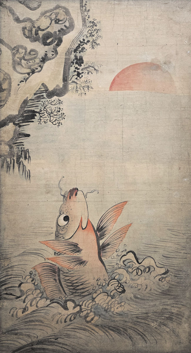 ▲ 작품3 ㅡ 물에서 잉어가 튀어 올라 용이 되는 장면을 담은 '어변성룡도' (19세기 추정). 출세와 성공을 염원하며 그렸죠. / 아모레퍼시픽미술관