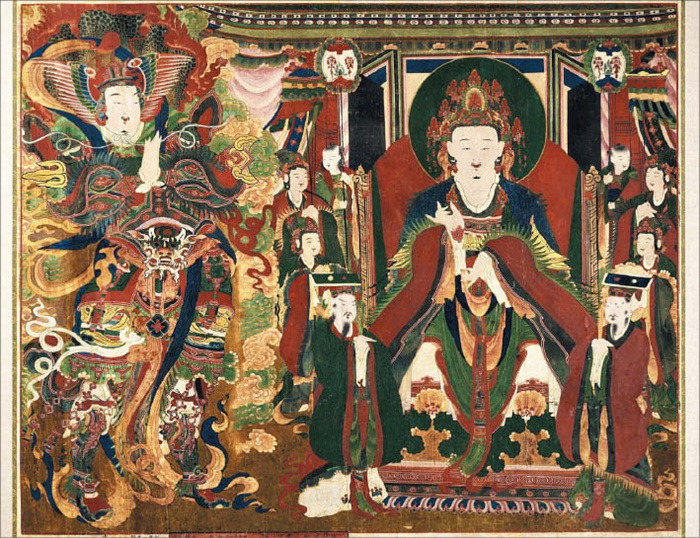 ▲ ❹ 1767년 혜잠 스님이 그린 '신중도'. 경북 예천군 보문사에 보관되던 중 1989년 도난당했어요. 도난 사실을 모르고 그림을 입수한 미국 시카고대 스마트 미술관이 신중도를 가지고 있었고, 35년 만인 지난해 우리나라로 돌아왔답니다. / 대한불교조계종