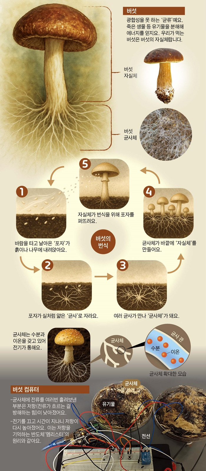 전기 신호 기억하는 버섯으로 반도체 만들 수 있대요