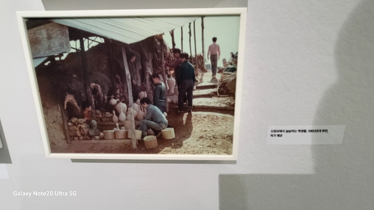 신상호가 인수한 정규 가마 앞에서 작업하는 학생들, 1960년대 후반, 작가 제공