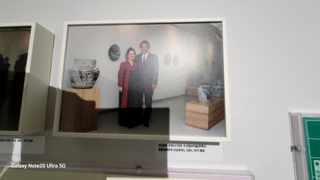 《신상호 분청사기전》조선일보 미술관에서 한윤숙 (좌)과 신상호 (우), 1991, 작가 제공
