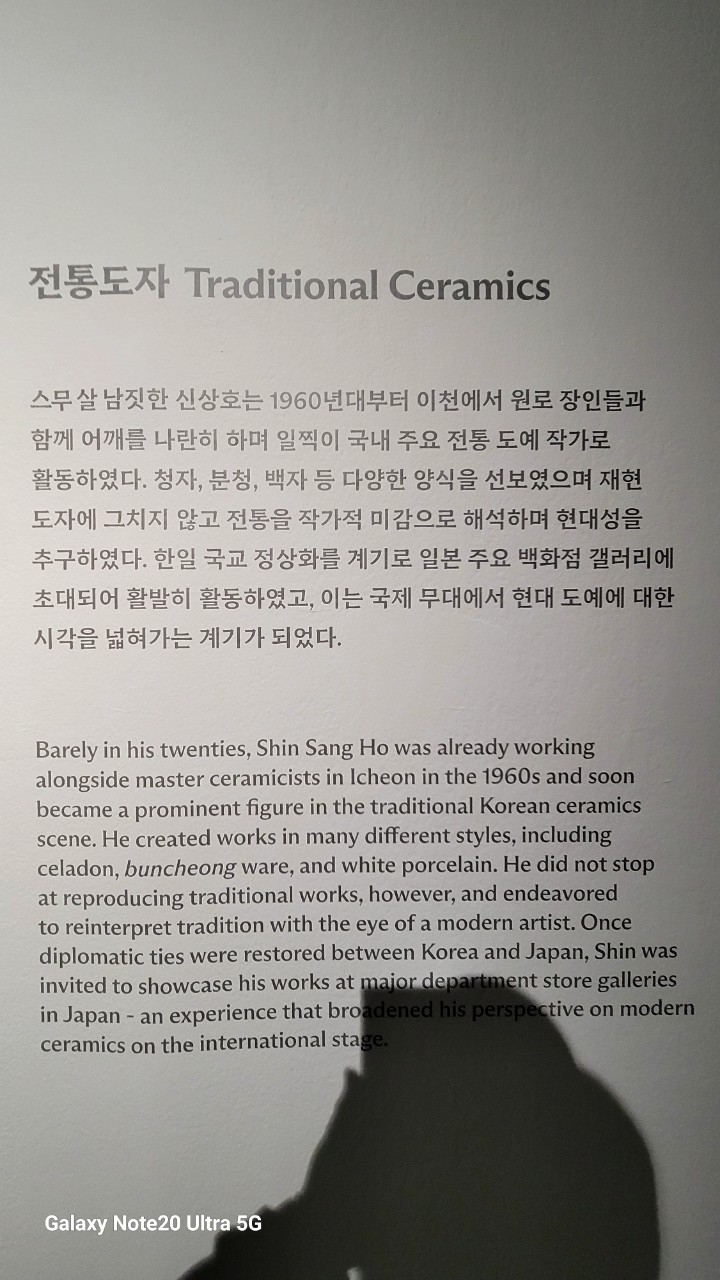 스무살 남짓한 신상호는 1960년대부터 이천에서 원로 장인들과 함께 어깨를 나란히 하며 일찍이 국내 주요 전통 도예작가로 활동하였다. 청자, 분청, 백자 등 다양한 양식을 선보였으며 재현 도자에 그치지 않고 전통을 작가적 미감으로 해석하며 현대성을 추구하였다. 한일 국교 정상화를 계기로 일본 주요 백화점 갤러리에 초대되어 활발히 활동하였고, 이는 국제 무대에서 현대 도예에 대한 시각을 넓혀가는 계기가 되었다.