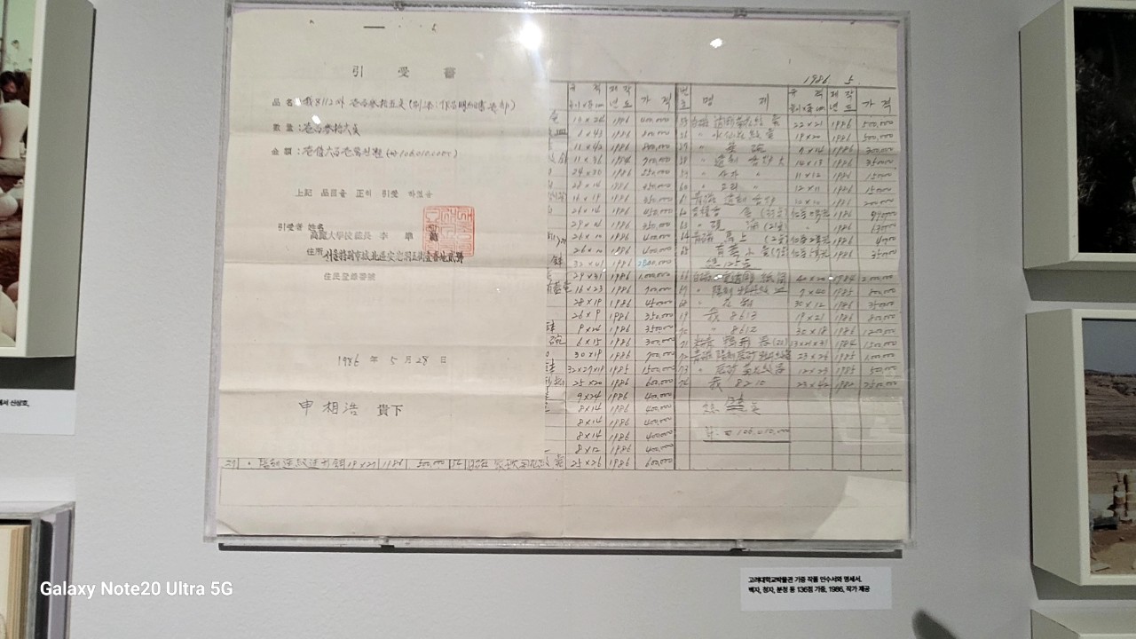 고려대학교박물관 기증 작품 인수서와 명세서