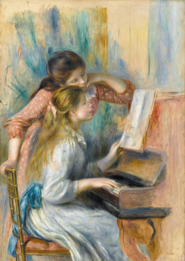 피아노 앞 소녀들이 더할 나위 없이 사랑스럽다. 배경은 부유하고 따스한 가정집 실내. 의자에 앉은 금발 소녀는 왼손으로 악보를 쥐고 오른손으로 피아노를 친다. 다정하게 그녀를 에워싼 갈색 머리 소녀는 오른손을 의자 등받이에 짚었고 왼팔은 피아노에 기대어 있다. 발갛게 상기된 뺨, 찰랑이는 머릿결, 옷자락에 반사된 빛까지 마치 하나의 화음처럼 어우러진 그림, 오귀스트 르누아르의 명작 ‘피아노를 치는 두 소녀’ (1892)다.