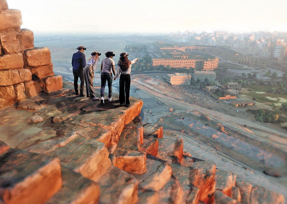 사진3 - 서울 용산 전쟁기념관에서 열리고 있는 '쿠푸 왕의 피라미드' 전시에선 가상현실 (VR)을 이용해 마치 피라미드 위에 올라선 듯한 체험을 할 수 있어요. 사진은 가상 이미지입니다. / Excurio