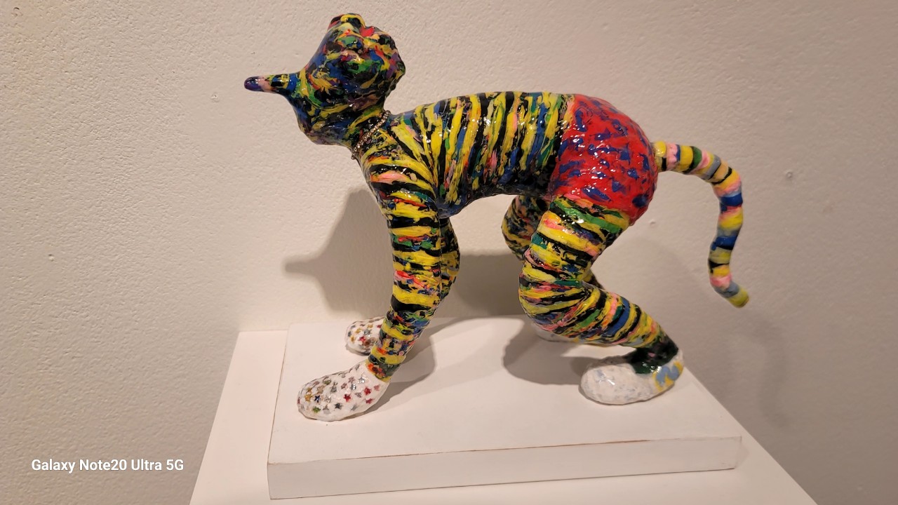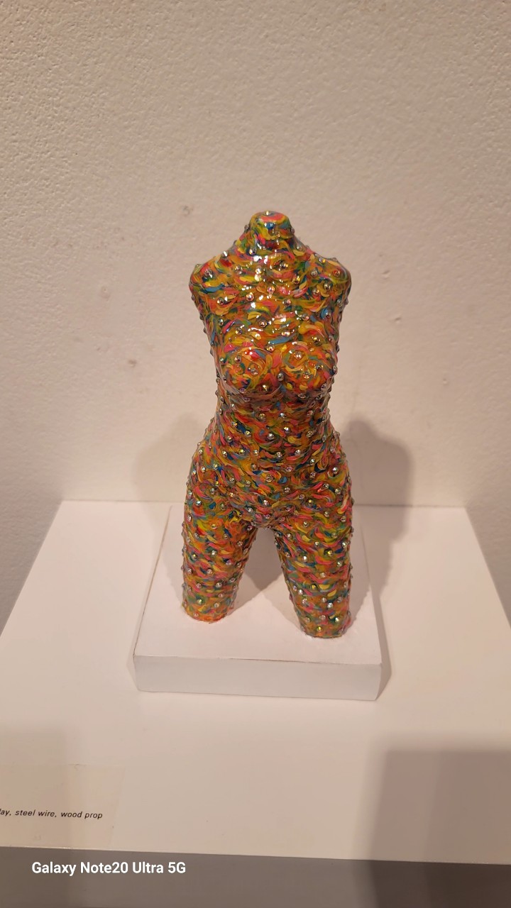 acrylic, resin, clay, steel wire, wood prop