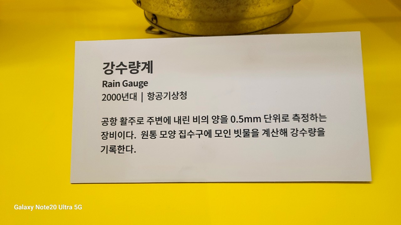 공항 활주로 주변에 내린 비의 양을 0.5㎜ 단위로 측정하는 장비이다. 원통 모양 집수구에 모인 빗물을 계산해 강수량을 기록한다.