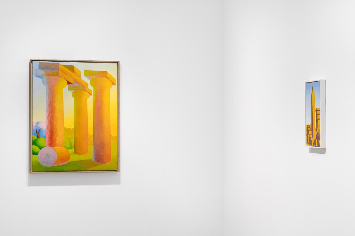 첨탑 같은 건축물, 고대 기둥과 유적지, 따스한 지중해 풍경이 꿈속 장면처럼 빛난다. 형태는 단순화하고, 빛이 만들어내는 색감을 풍부하게 살렸다. 만지오네는 “아버지는 그림자조차 검은색 대신 다양한 색을 섞어서 썼다” 며 “마법 같은 순간의 풍경을 화면에 담아내고 싶었기 때문” 이라고 했다. 12일까지.