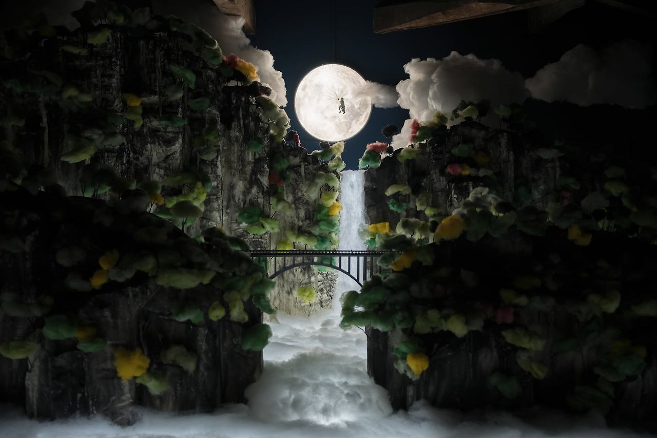 충남 서천의 근대 건축 유산인 '판교극장' 2층을 솜이라는 재료로 기억의 파편과 시간의 흔적을 따뜻하면서도 신비롭게 재구성한 노동식의 설치 작품. / 서천군