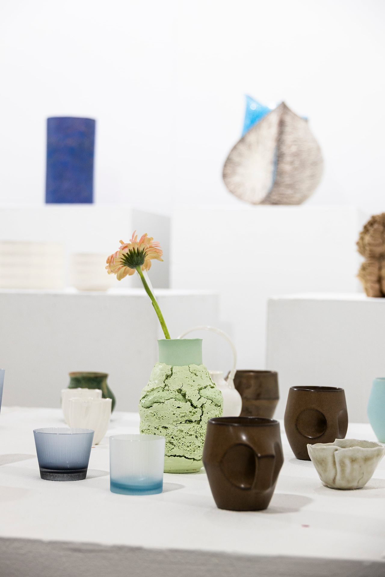 공예 작품은 판매 완료를 알리는 빨간 스티커가 눈에 띈다. 컵과 다기 등 실용 공예품이 인기가 높다. / 이경호 영상미디어 기자