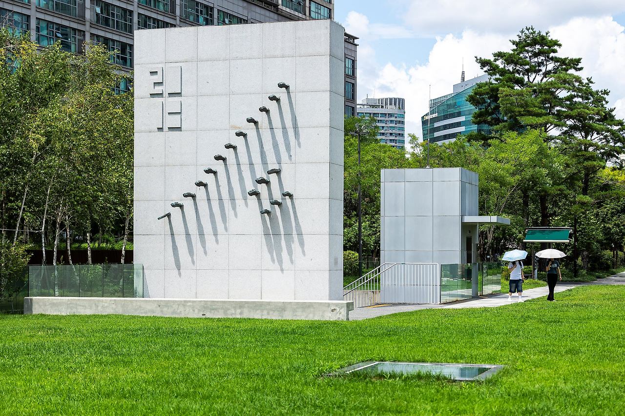역사를 빠져나오면 도처에 맛집 등 즐길 거리가 유혹하지만, 서소문 방향으로 10분 정도 걸으면 녹음으로 둘러싸인 특별한 공원이 기다리니 서둘러 갈 수밖에. 빌딩 숲 사이에 폭 안기듯 자리한 공원은 2019년에 개관한 ‘서소문성지 역사박물관’ 의 ‘역사 공원’ 이다. 박물관은 개관과 동시에 서울시 최우수 건축상을 받아 성지순례객들은 물론이고 건축학도, 사진 동호인들이 일부러 찾는 서울역 인근 숨은 명소다.