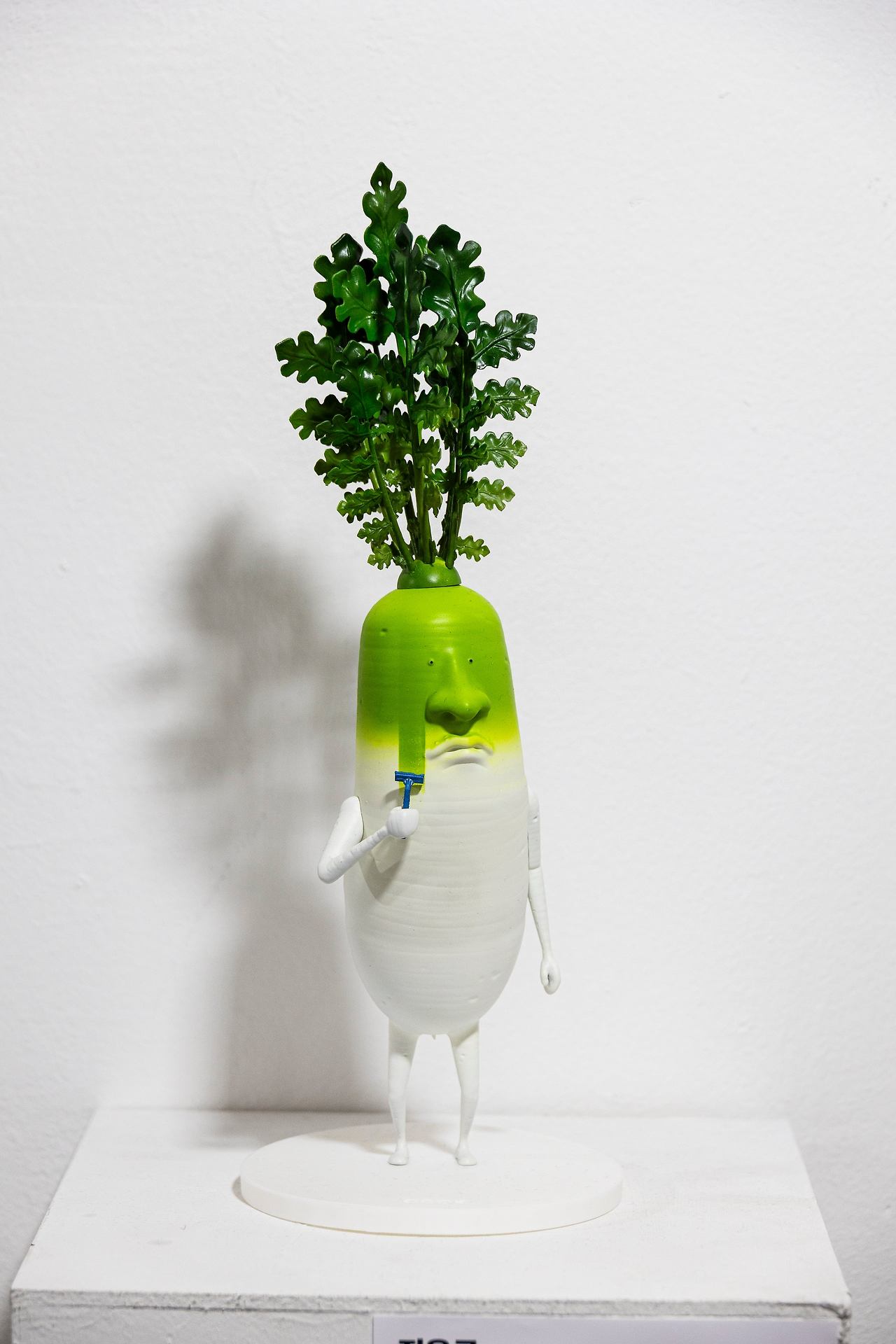 '아시아프' 1부 작품 중 하나인 전용국의 '면도하는 무'. 옆엔 또 다른 작품인 '출근하는 버섯들' 도 있다. 관람객들의 웃음을 유발한 작품 중 하나다. / 이경호 영상미디어 기자