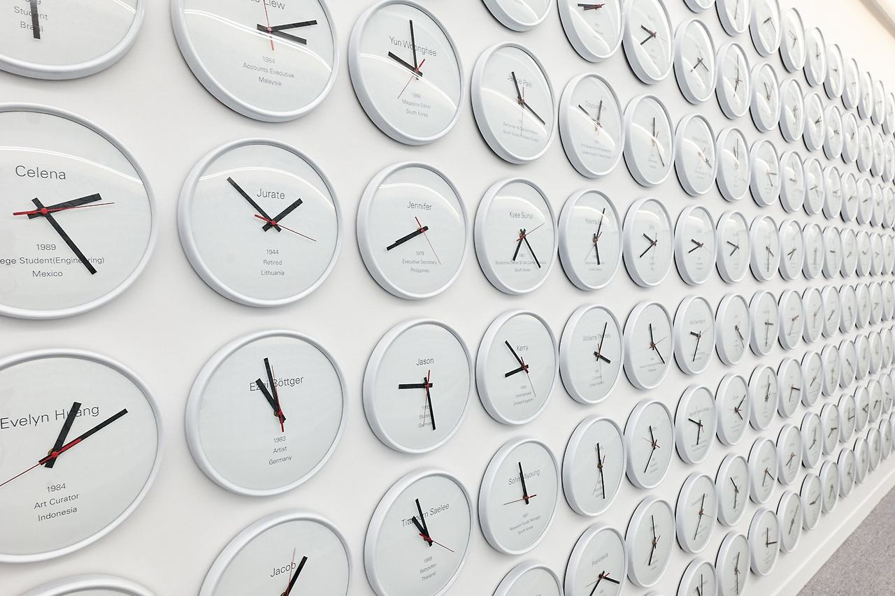 한국 작가 이완의 작품 ‘고유시’ 는 국적과 나이, 직업에 따라 각기 다른 속도로 돌아가는 560개의 시계가 흰 벽을 가득 메웠다. 서로 다른 리듬으로 째깍거리는 시계는 빈부의 격차도 보여주지만, 결국 인간에게 주어진 시간은 모두 유한하다는 진리를 깨닫게 한다. 김희영 총괄디렉터는 “광활한 우주와 비교하면 인간의 삶은 찰나보다 짧고 먼지처럼 미미하다” 며 “개별의 존재가 어떻게 서로를 비추고 위로할 수 있는지 사유해 보는 시간” 이라고 했다. 내년 8월 8일까지. 성인 1만원.
