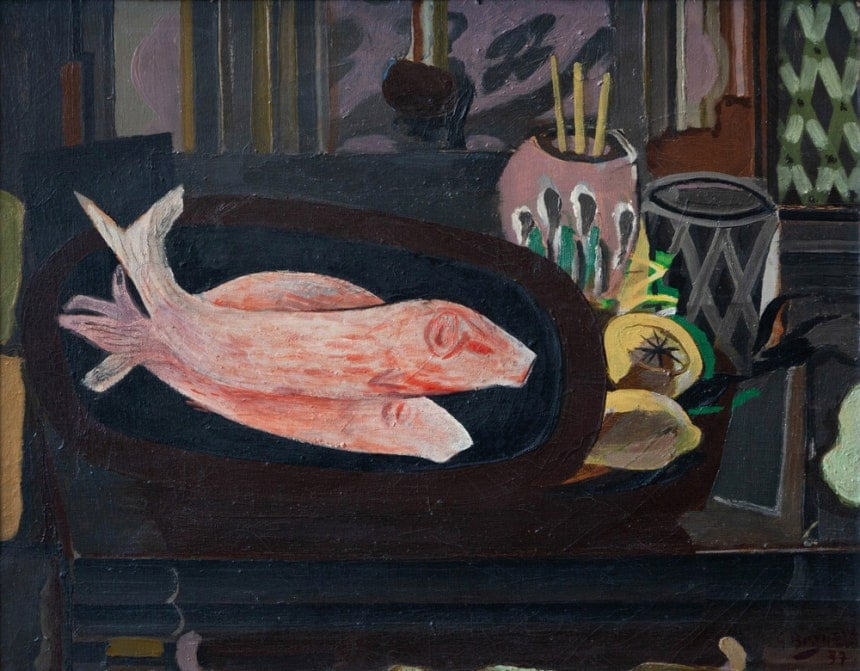 조르주 브라크, The Red Mullets (1937). 44 × 55cm. / 레지스 크람프 갤러리