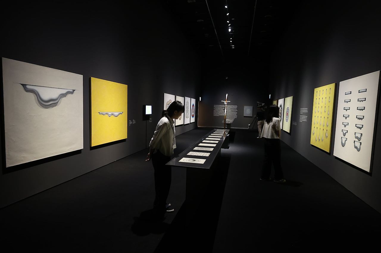2장에 전시된 김창열의 '현상' 연작을 살펴보는 관람객들. / 연합뉴스