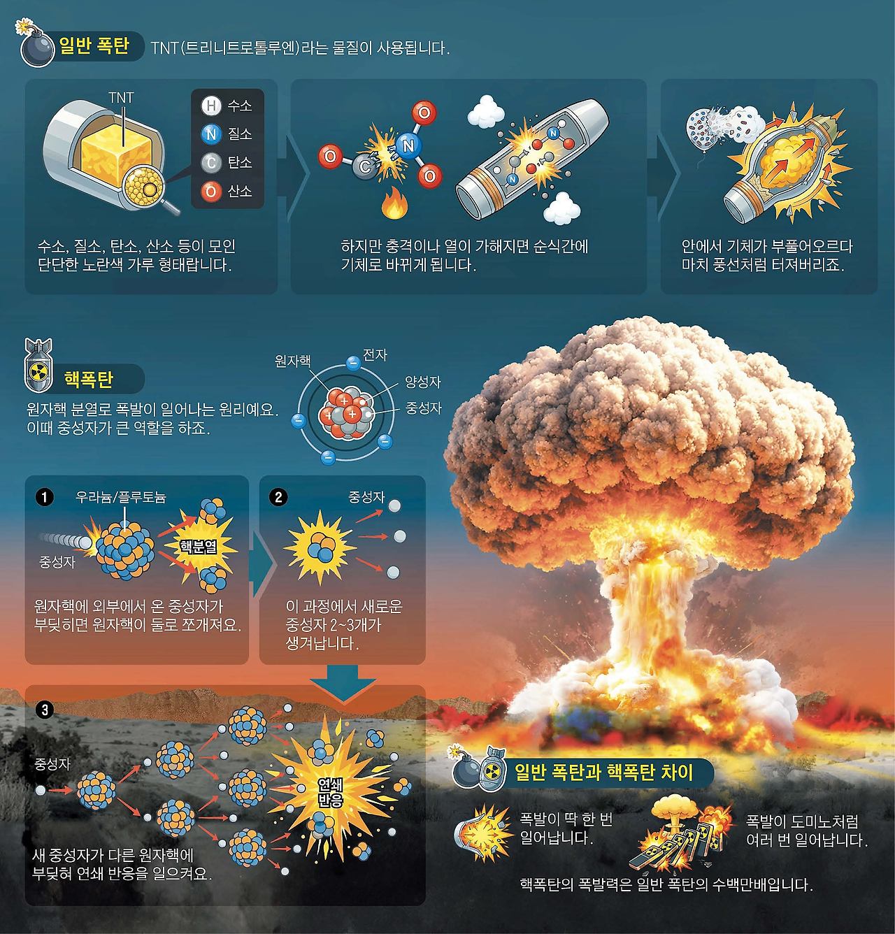 핵분열 이용한 연쇄 반응으로 일반 폭탄의 수백만배 위력