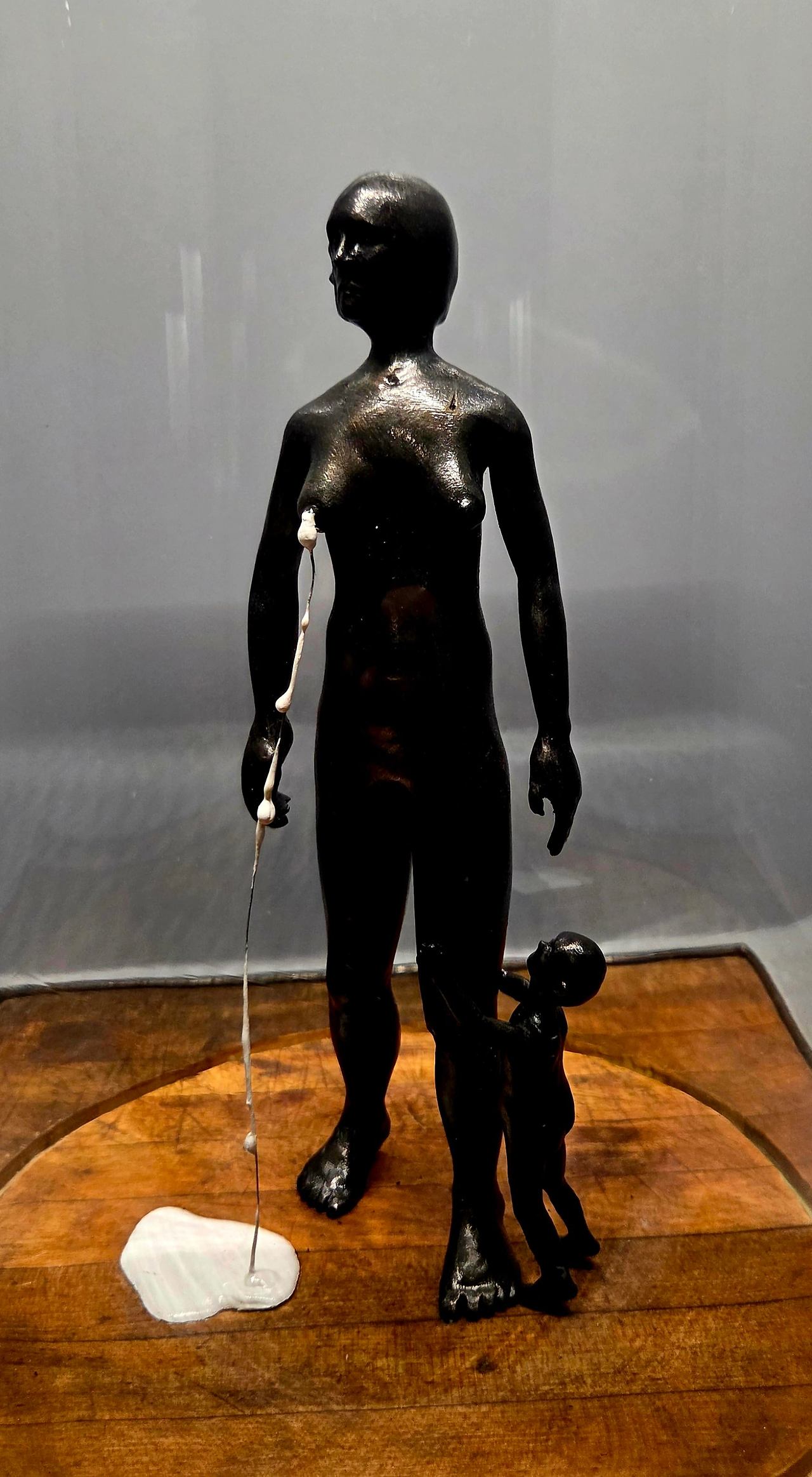 루이즈 부르주아, '나는 되돌린다 (내부 요소 · 1999 ~ 2000)'. 젖먹이 아이가 배가 고파 엄마를 붙잡고 있지만, 젖을 주지 않고 땅바닥에 버리고 있는 '나쁜 엄마' 를 표현했다. 철, 에나멜, 유리, 목재. 프랑스 샤토 라 코스트 소장. / 허윤희 기자