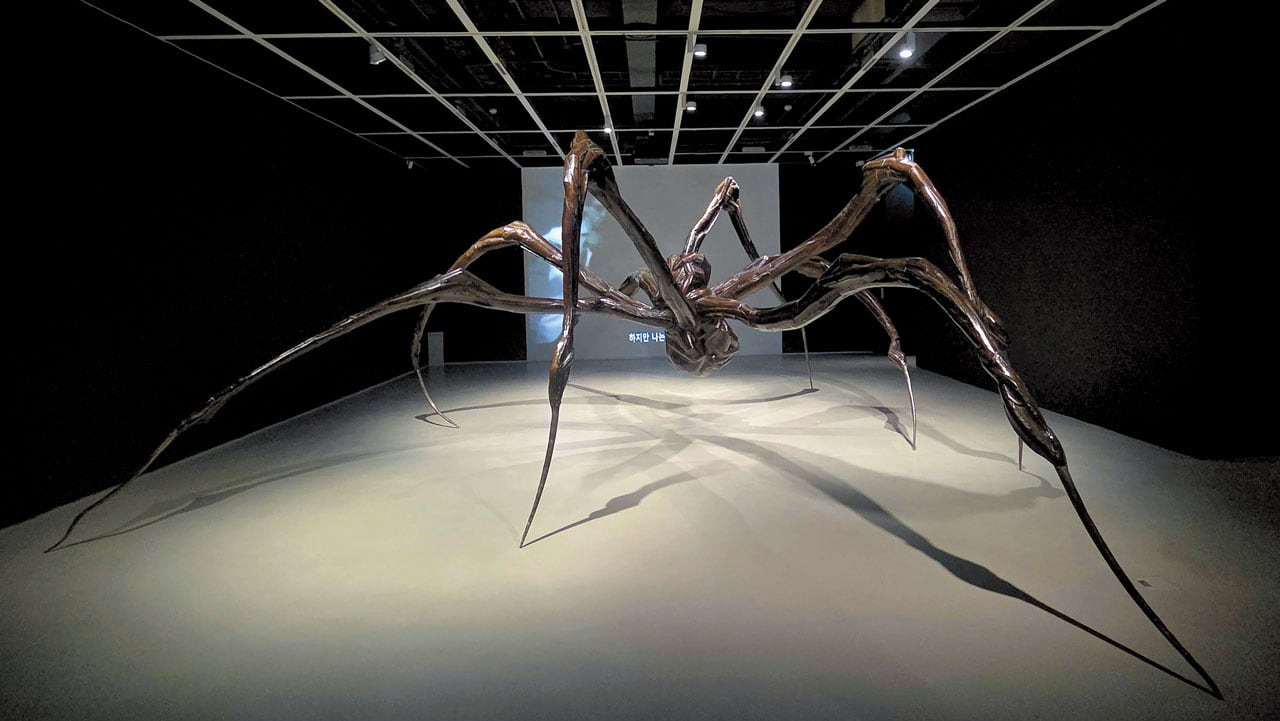 낮은 자세로 포복하고 있는 거미 한 마리가 전시장을 장악했다. 한껏 웅크린 몸, 금방이라도 튀어나올 듯 공격적인 태세다. 루이즈 부르주아 (1911 ~ 2010)의 대형 청동 조각 ‘웅크린 거미’. 1978년 퍼포먼스 실황 영상이 흐르는 뒷면 스크린에선 “엄마는 나를 버렸어” 라고 노래하는 여성 퍼포머의 고음이 귀를 때린다.