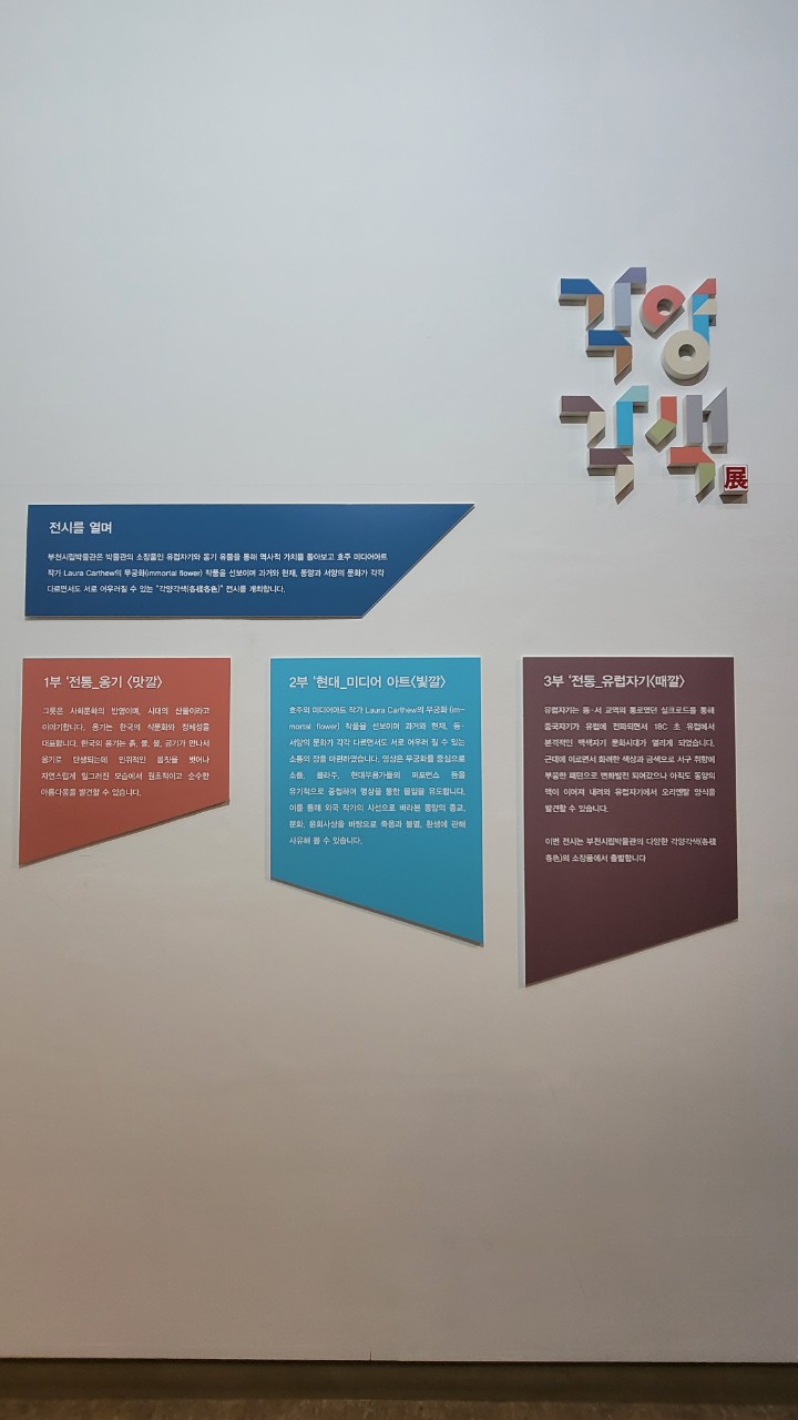부천시립박물관은 박물관의 소장품인 유럽자기와 옹기유물을 통해 역사적 가치를 돌아보고 호주 미디어아트 작가 Laura Carthew의 무궁화(Immortal flower) 작품을 선보이며 과거와 현재, 동양과 서양의 문화가 각각 다르면서도 서로 어우러질 수 있는 "각양각색(各樣各色)" 전시를 개최합니다.