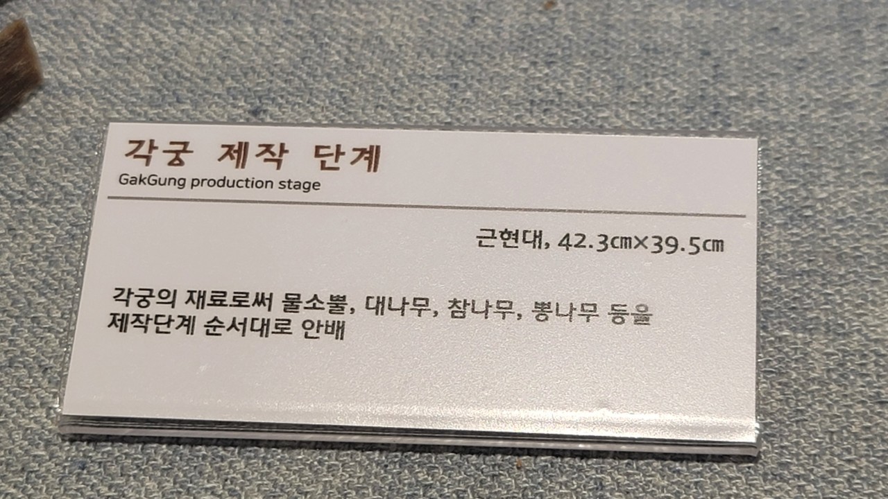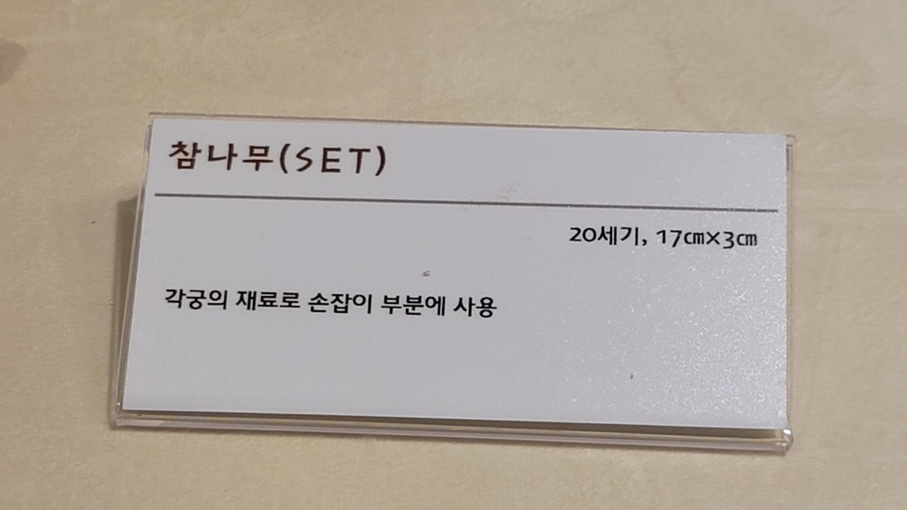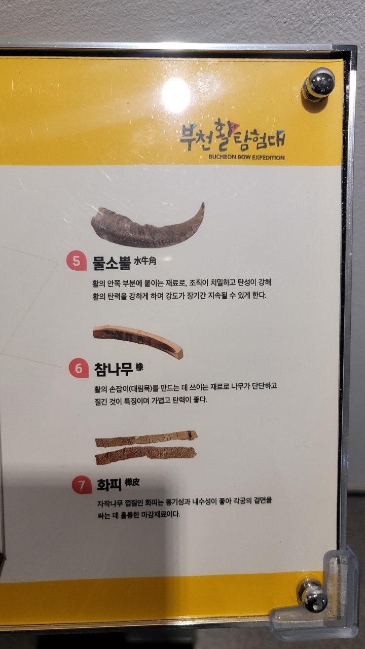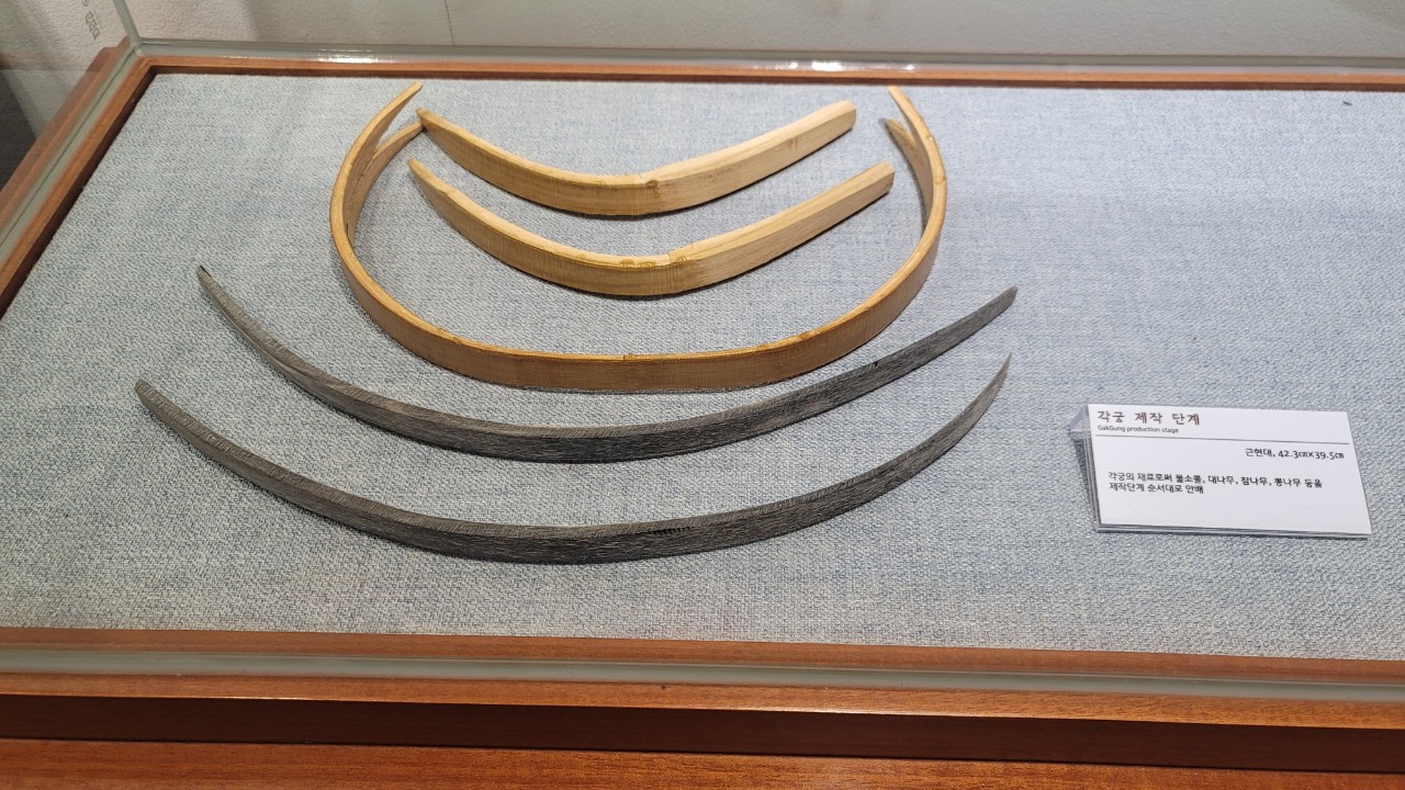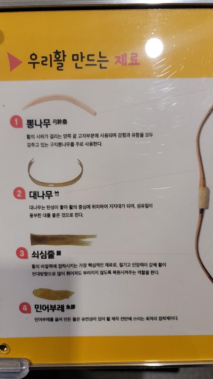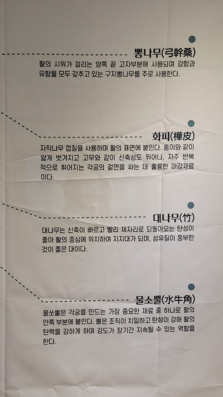 각궁의 재료로써 물소뿔, 대나무, 참나무, 뽕나무 등을 제작단계 순서대로 안배