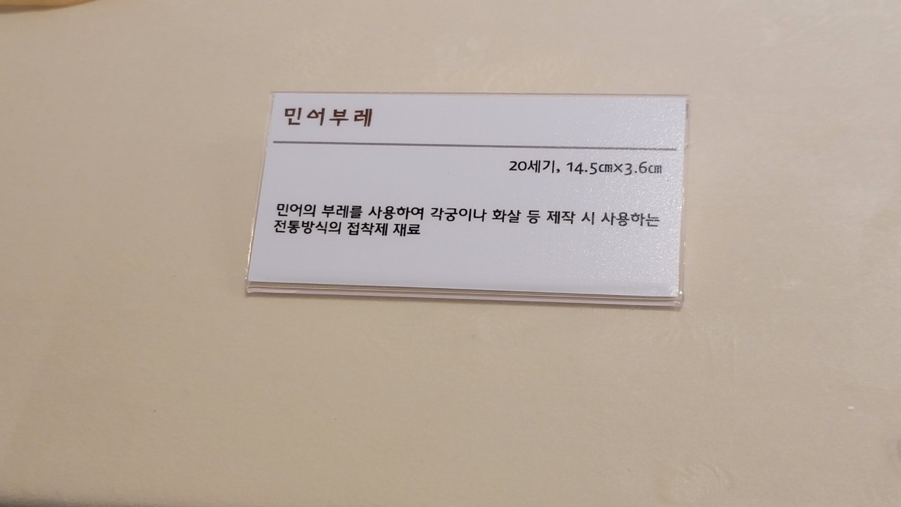 민어의 부레를 사용하여 각궁이나 화살 등 제작 시 사용하는 전통방식의 접착제 재료