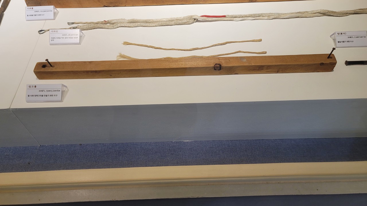 각궁의 시위줄 여러 겹의 목면을 봉밀로 접착