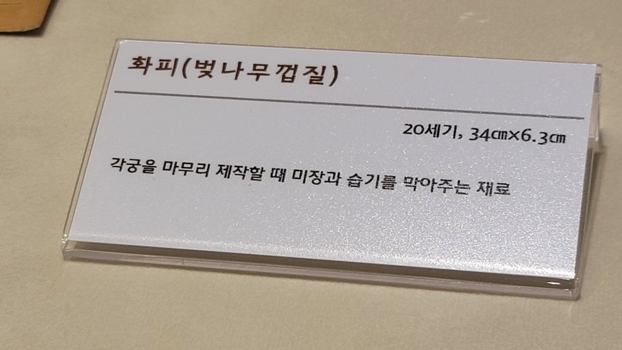 자작나무 껍질을 사용하며 활의 표면에 붙인다. 종이와 같이 얇게 벗겨지고 고무와 같이 신축성도 뛰어나, 자주 반복적으로 휘어지는 각궁의 겉면을 싸는 데 훌륭한 마감재료이다.