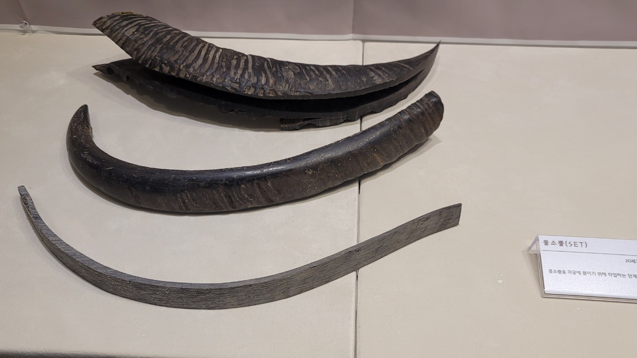 물소뿔은 각궁을 만드는 가장 중요한 재료 중 하나로 활의 안쪽 부분에 붙인다. 뿔은 조직이 치밀하고 탄성이 강해 활의 탄력을 강하게 하며 강도가 장기간 지속될 수 있는 역할을 한다.