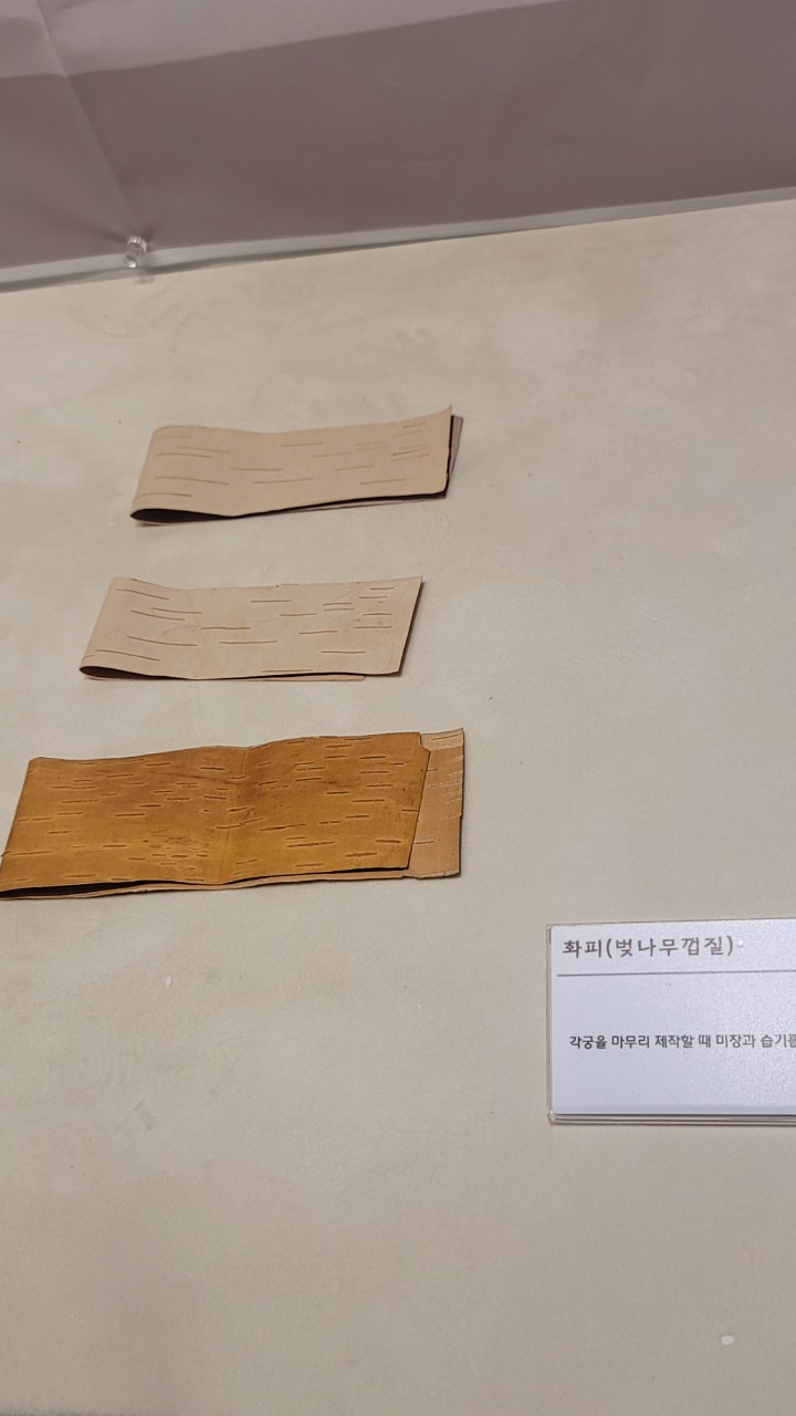 각궁을 마무리 제작할 때 미장과 습기를 막아 주는 재료