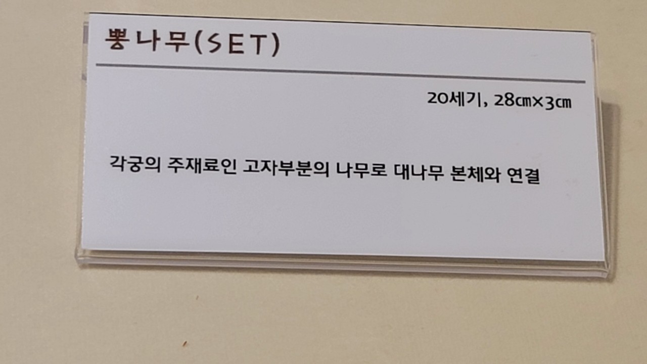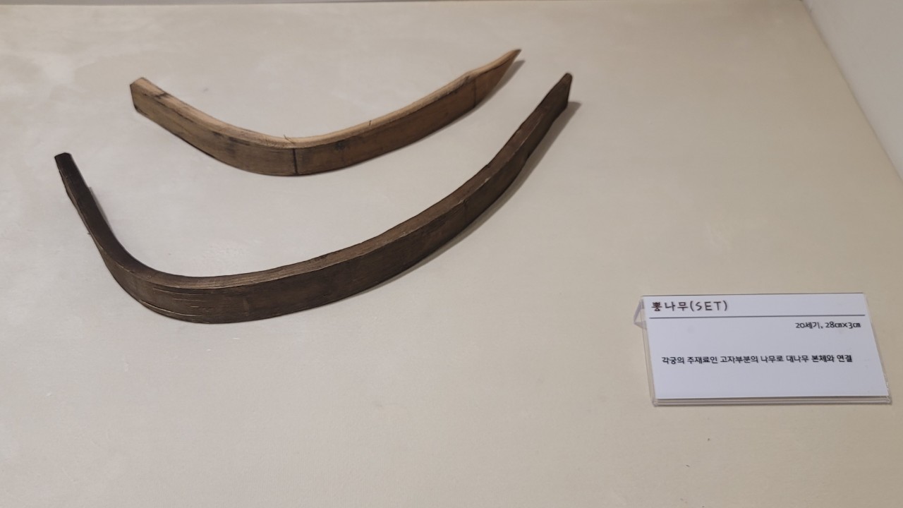 각궁의 주재료인 고자부분의 나무로 대나무 본체와 연결